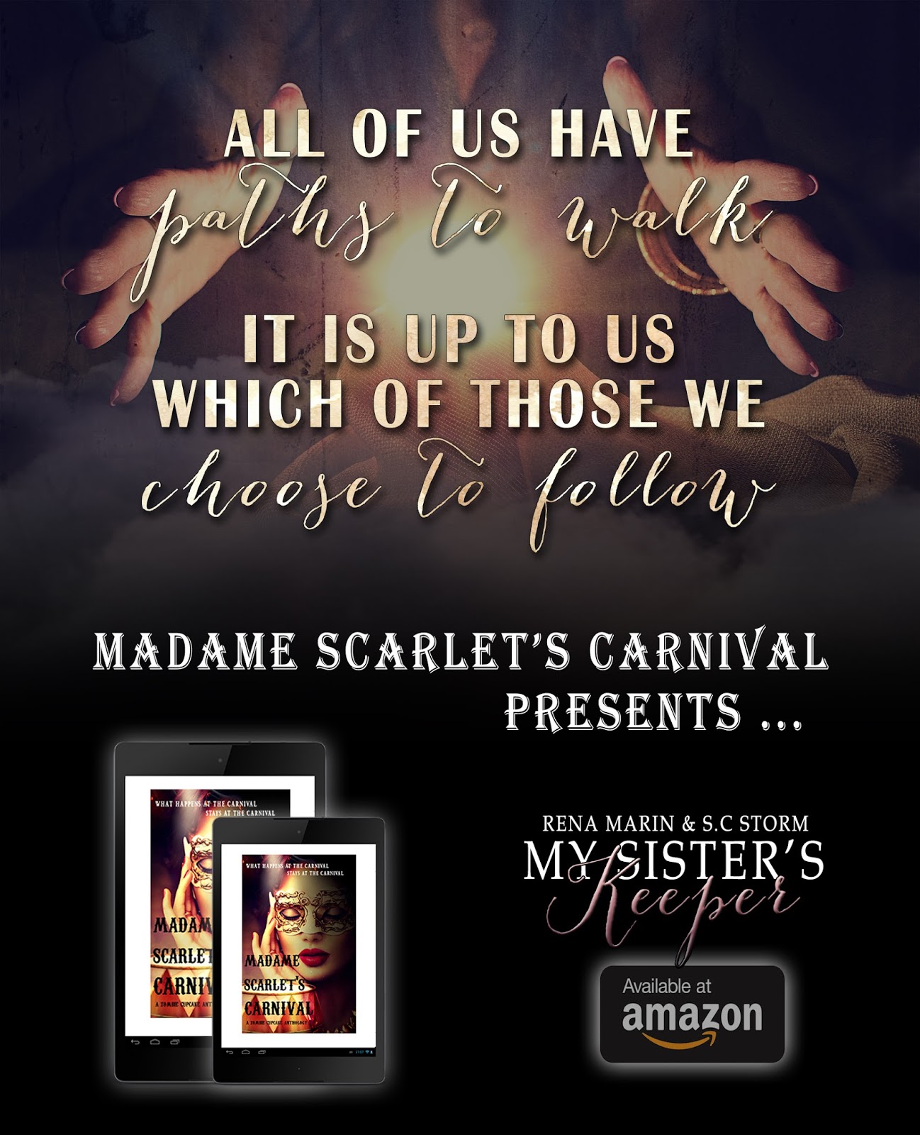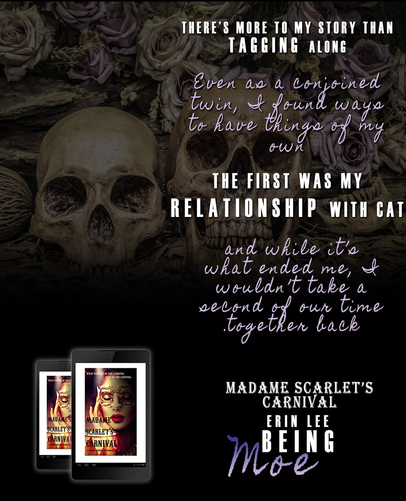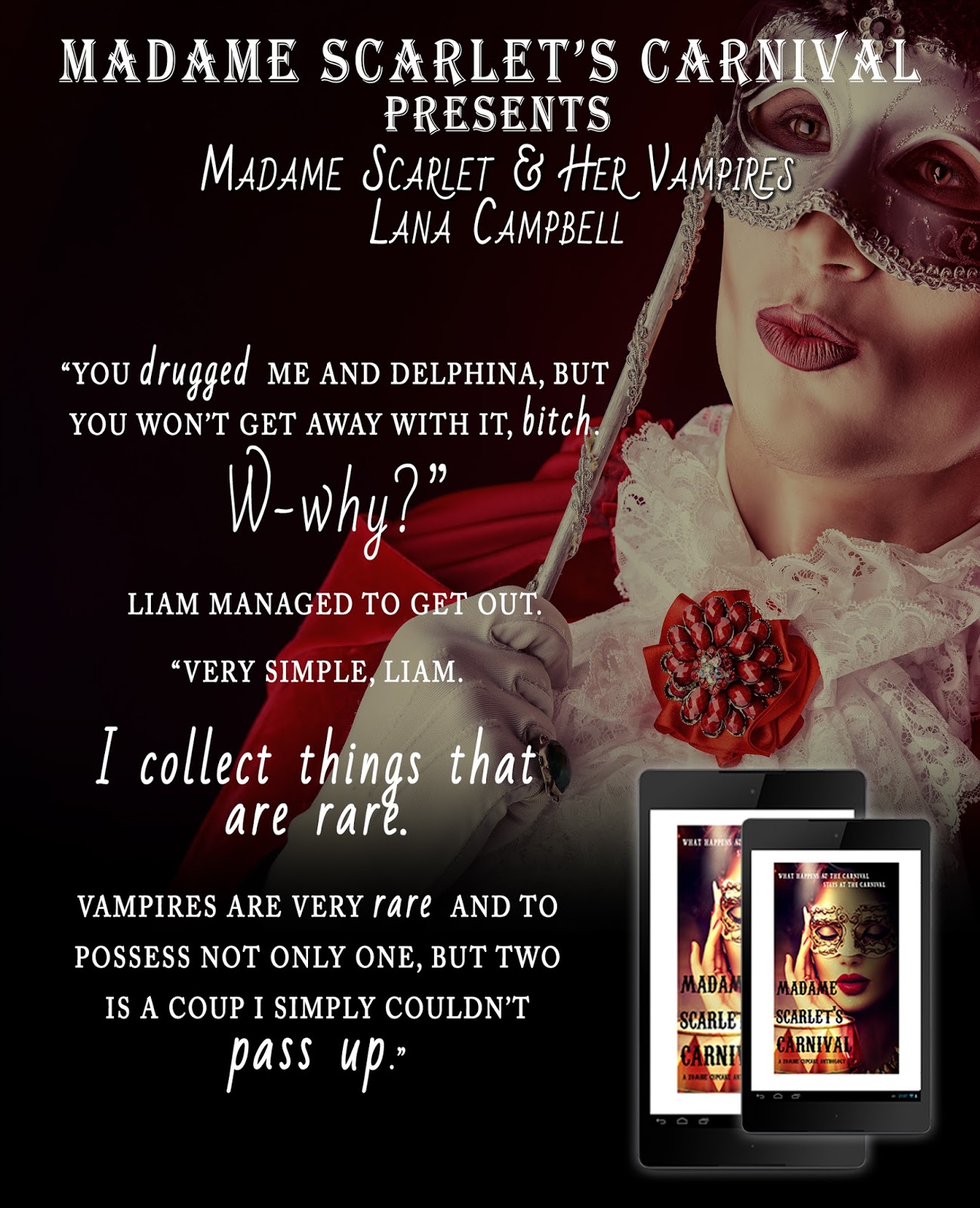 Madame Scarlet’s Carnival is a collection of seven stories based at the carnival that sits atop the Manor Hill and run by the equally beautiful and mysterious Madame Scarlet.